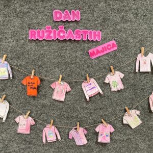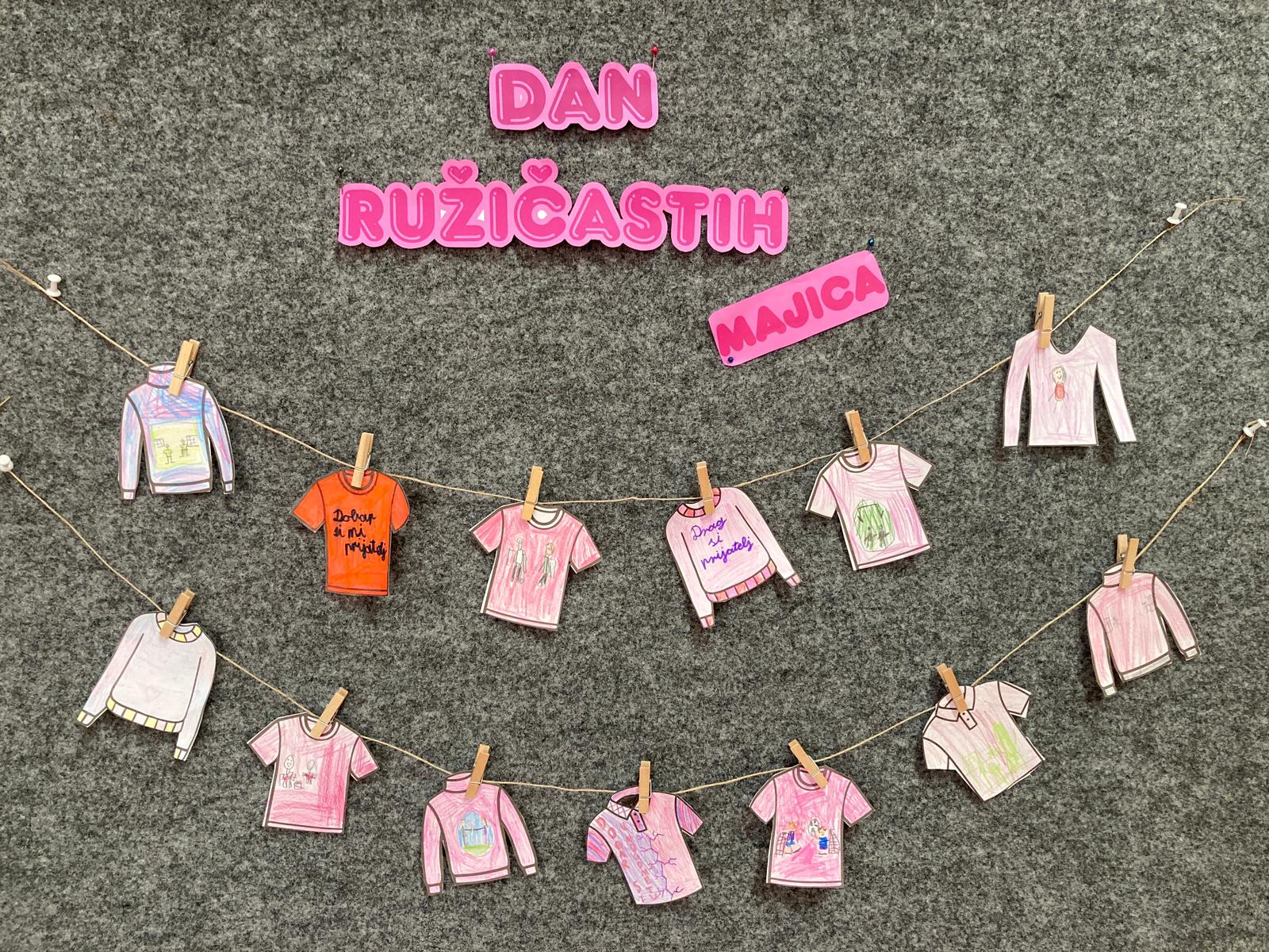 Učenici produženog boravka su s psihologinjom izradili ružičaste majice na koje su napisali lijepe poruke svojim vršnjacima.