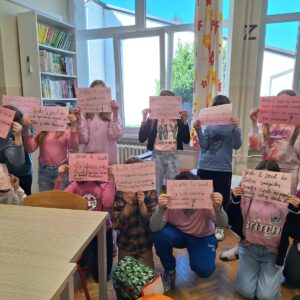 Učenici 3. razreda su istraživali riječi i na svojim ružičastim majicama napisali koje su za njih najljepše i najsnažnije riječi na svijetu.