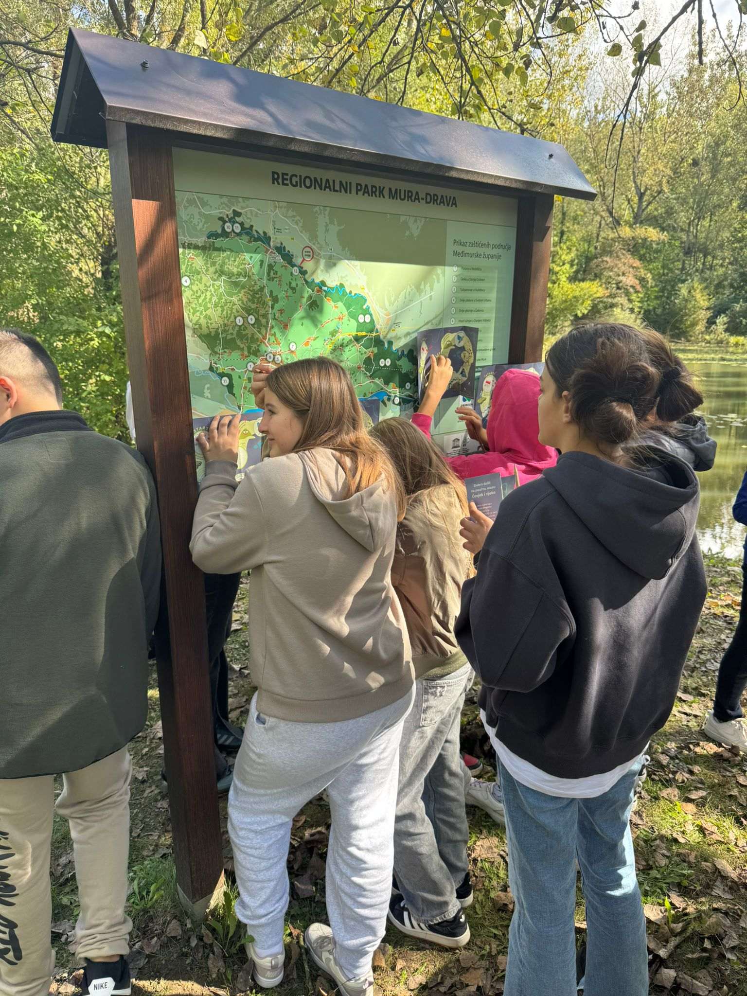 Tijekom posjeta učenici su prošetali poučnom stazom uz rijeku Muru, gdje su mogli vidjeti primjerke karakterističnih biljnih vrsta poput vrbe, johe i topole, kao i čuti o brojnim životinjskim vrstama koje obitavaju na tom prostoru. Uz šetnju, razgledali su postav Centra, koji na zanimljiv i interaktivan način prikazuje raznolikost flore i faune ovog područja.