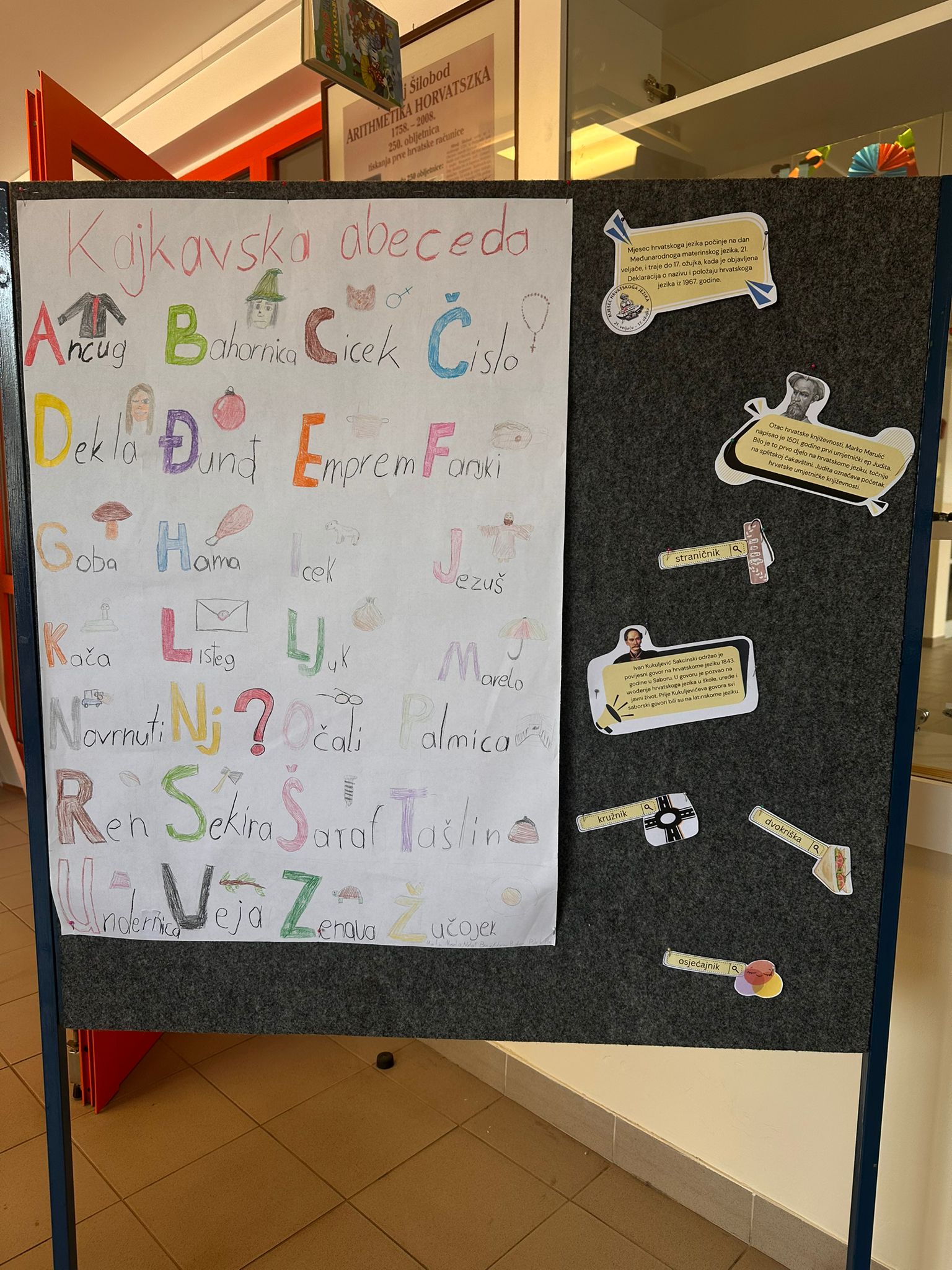 Na satu Likovne kulture učenici sedmih razreda temperama su crtali najpoznatije likove i autore romana, a crteže krase poticajne izreke o učenju, pisanju i školi, koje su osmislili na satu Hrvatskoga jezika. Učenici petih razreda istraživali su kajkavsko narječje, a zatim sastavili svoju kajkavsku abecedu.