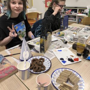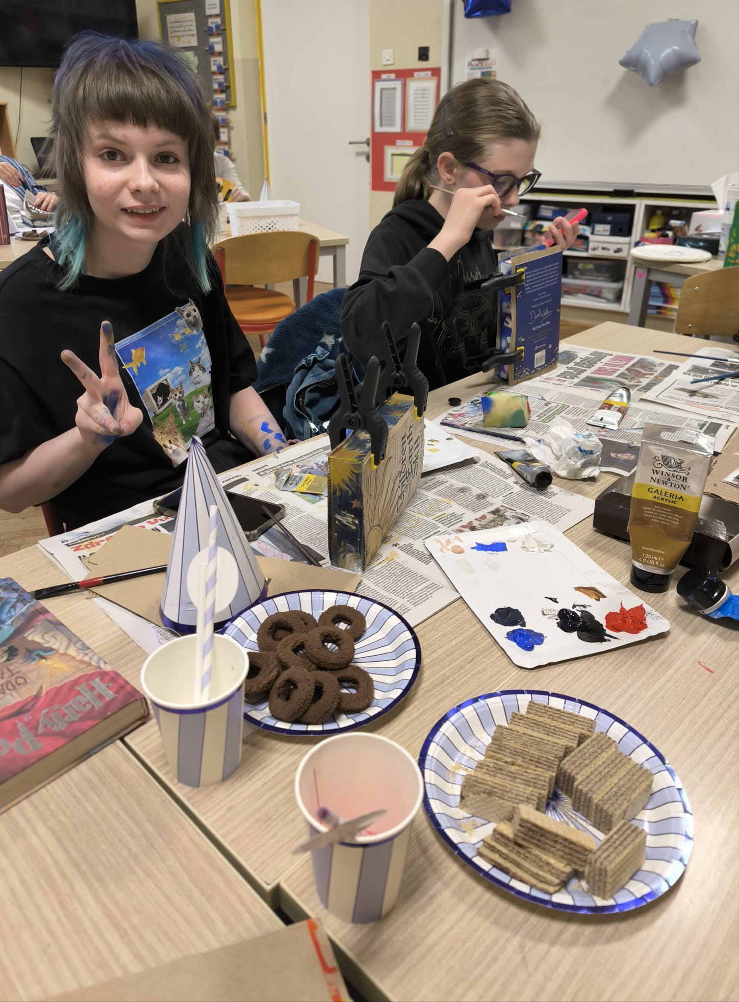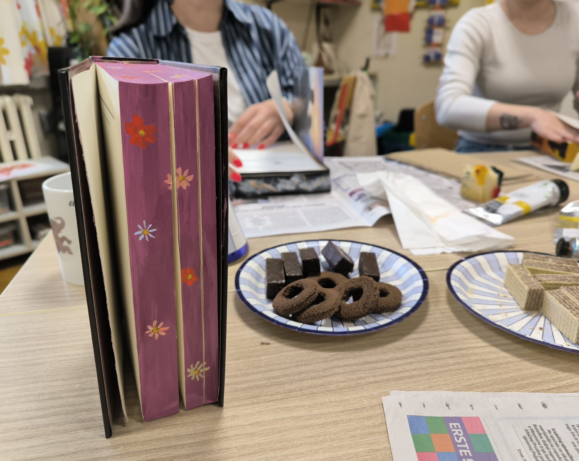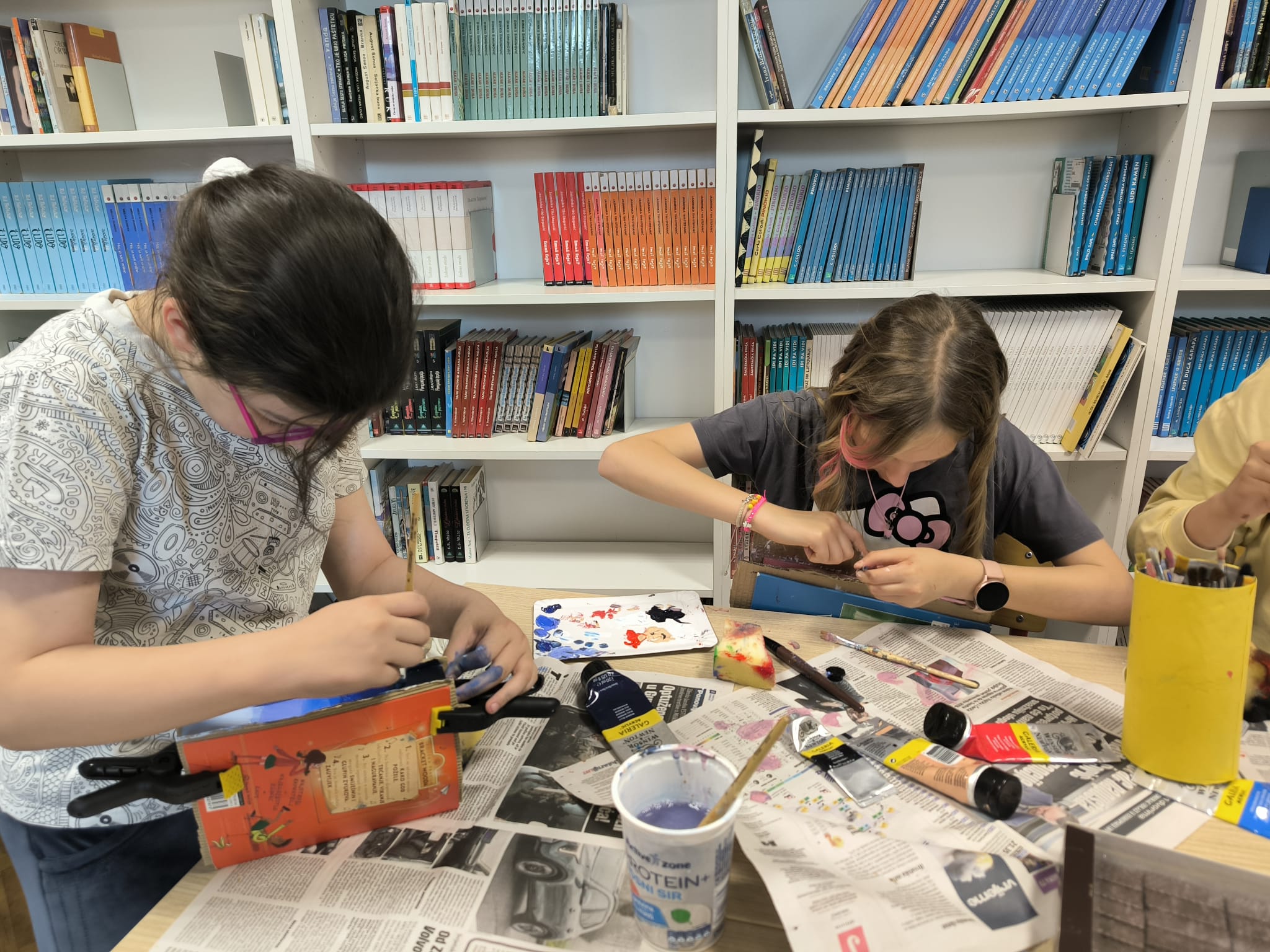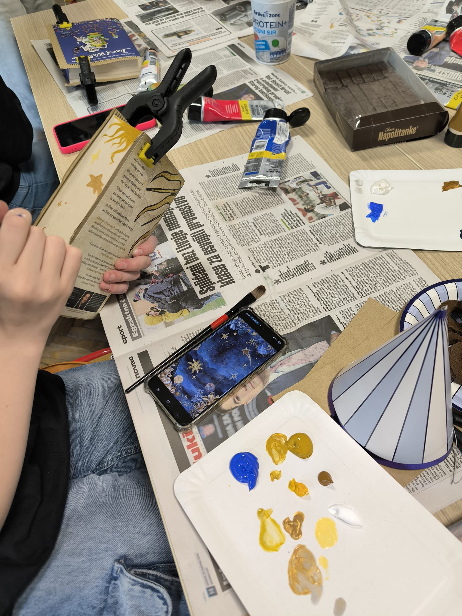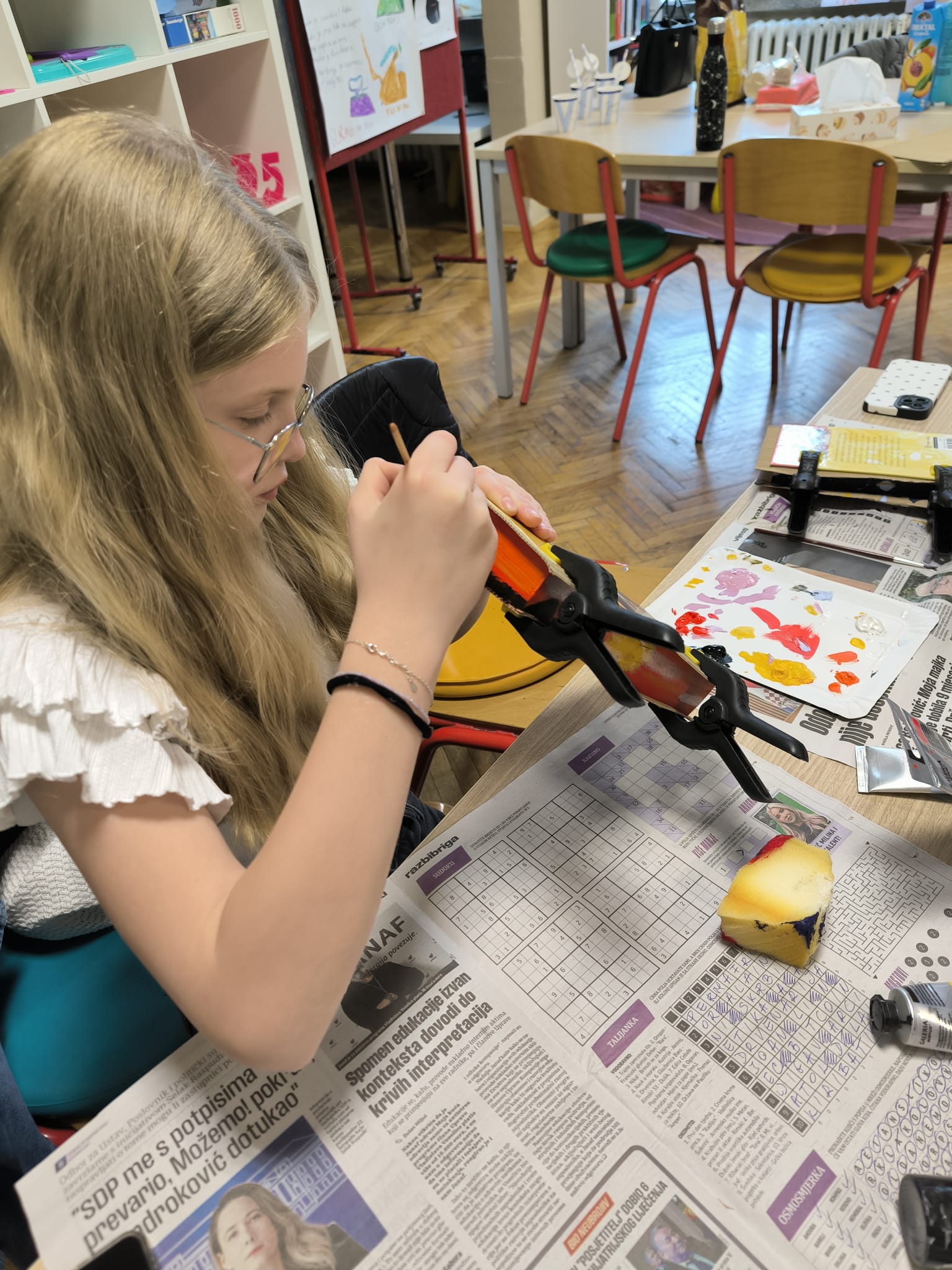 Učenice su oslikavale rubove knjiga akrilnim bojama, pretvarajući ih u mala umjetnička djela i dajući im potpuno novi, jedinstveni izgled. Svaka knjiga postala je originalna, odražavajući maštu i kreativnost svojih autora. U opuštenoj i veseloj atmosferi školske knjižnice, uz sokove i keksiće, učenici su se družili, razmjenjivali ideje i uživali u stvaranju. Osim što su razvijali svoje likovne vještine, dodatno su se povezali s knjigama na kreativan i drugačiji način.