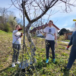 Učenici 6. b razreda, uz vodstvo učiteljica Tajane Petrina i Ivanke Galunić, zaštitili su sadnice voćaka posađene prošle jeseni u sklopu Ekodana. Osim toga, očistili su voćnjak i pripremili ga za buduće proljetne aktivnosti.