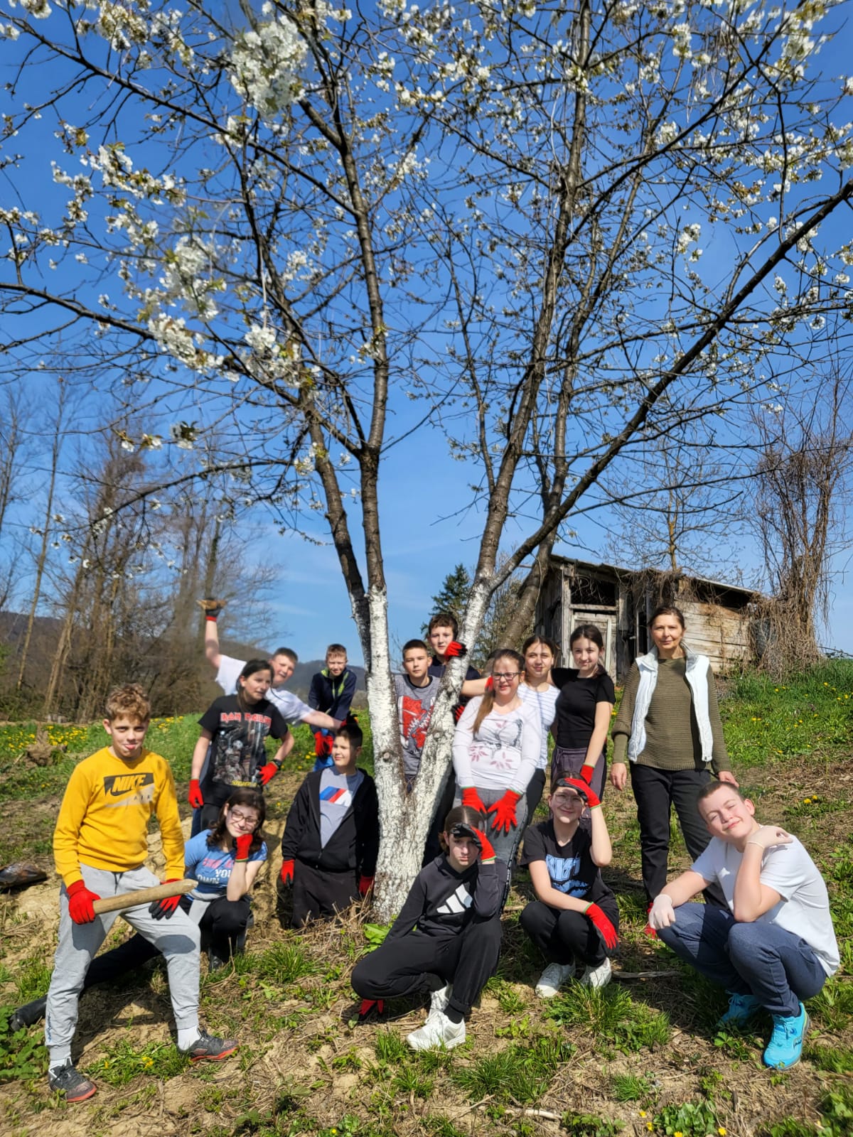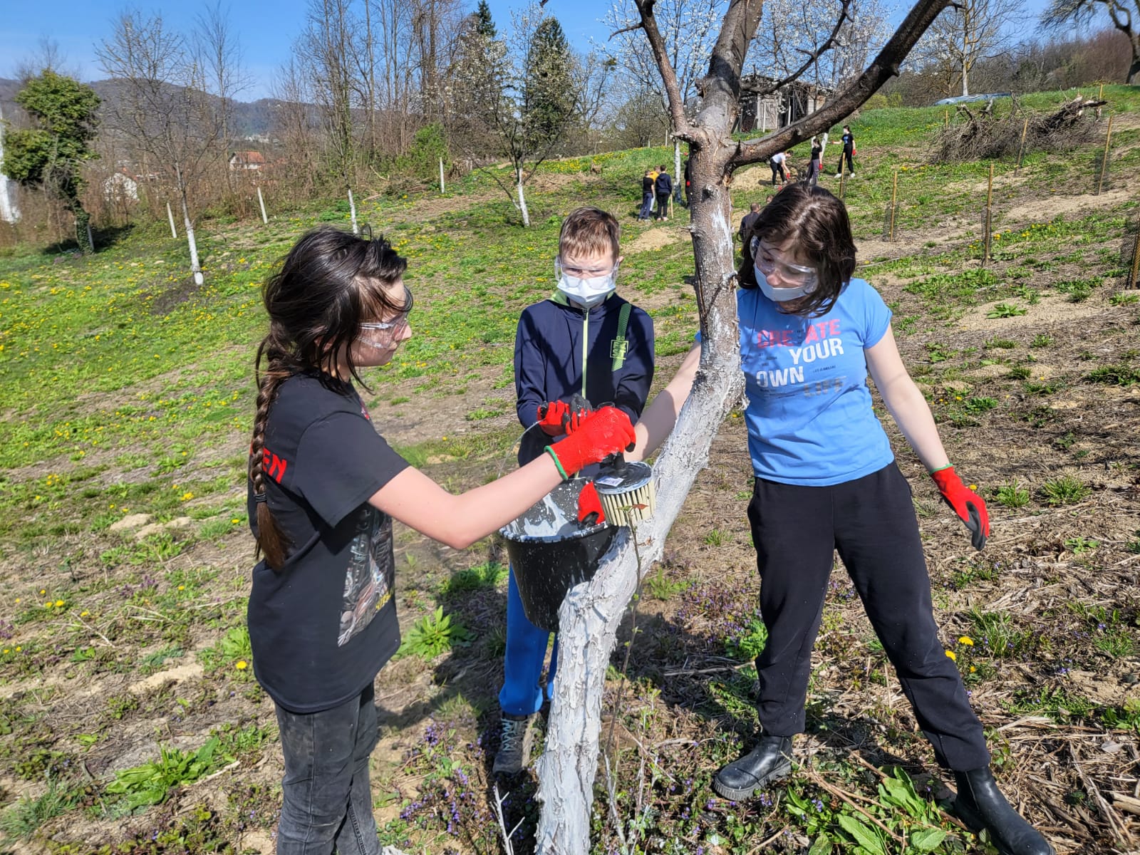 Učenici 6. b razreda, uz vodstvo učiteljica Tajane Petrina i Ivanke Galunić, zaštitili su sadnice voćaka posađene prošle jeseni u sklopu Ekodana. Osim toga, očistili su voćnjak i pripremili ga za buduće proljetne aktivnosti.